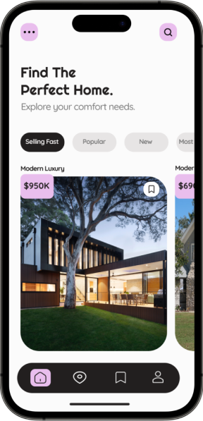 Home Sweet Home acts as a user's personal home shopper. The app allows users to categorize their search by searching for homes that are selling fast, most viewed, new, and popular. From the home screen, users can also quickly view and bookmark the promoted homes.