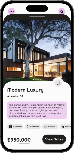 Users will enjoy a functional and detailed app that provides users with prioritized home-buying information. Users will enjoy notifications of expiring bookmarks, land information of each home, and the ability to share home listings. The aesthetic of the app makes users feel as if they are moving right into their dream home.