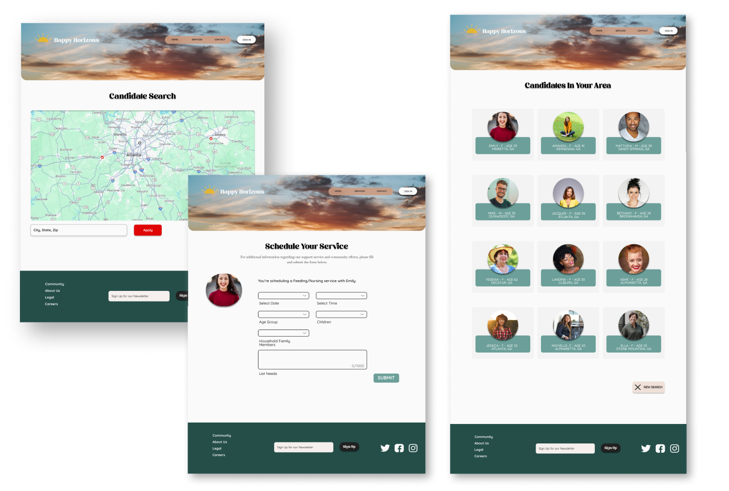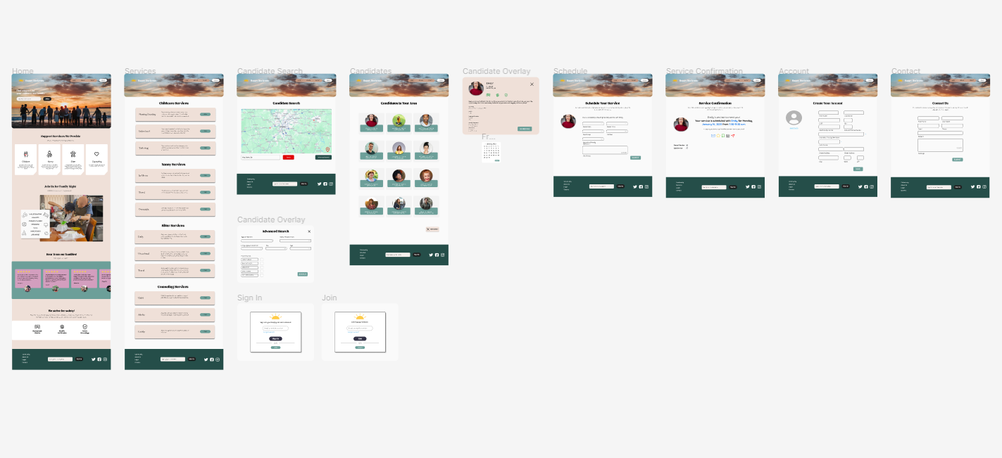 I designed a website for Happy Horizons that allows users to prescreen and schedule candidates for in-home childcare services. I included design features to make Happy Horizons a trusted source for family support.